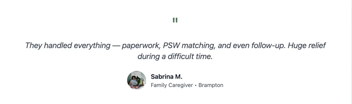 Yes, all our PSWs are fully licensed, background checked, and covered by comprehensive liability insurance. We verify credentials, references, and conduct thorough screening before any placement.